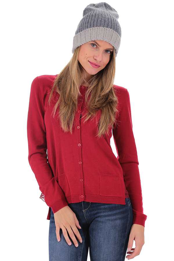 Cappello a cuffia lavorato a maglia con risvolto a contrasto.