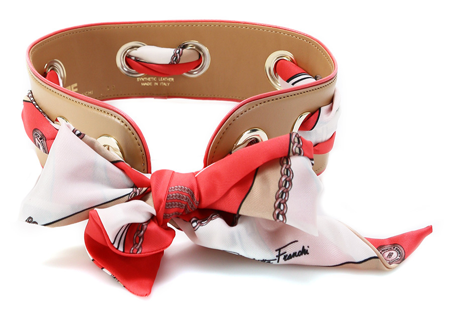 Cintura in eco pelle con foulard intrecciato. Misure 6,5 cm. Dettagli gold.