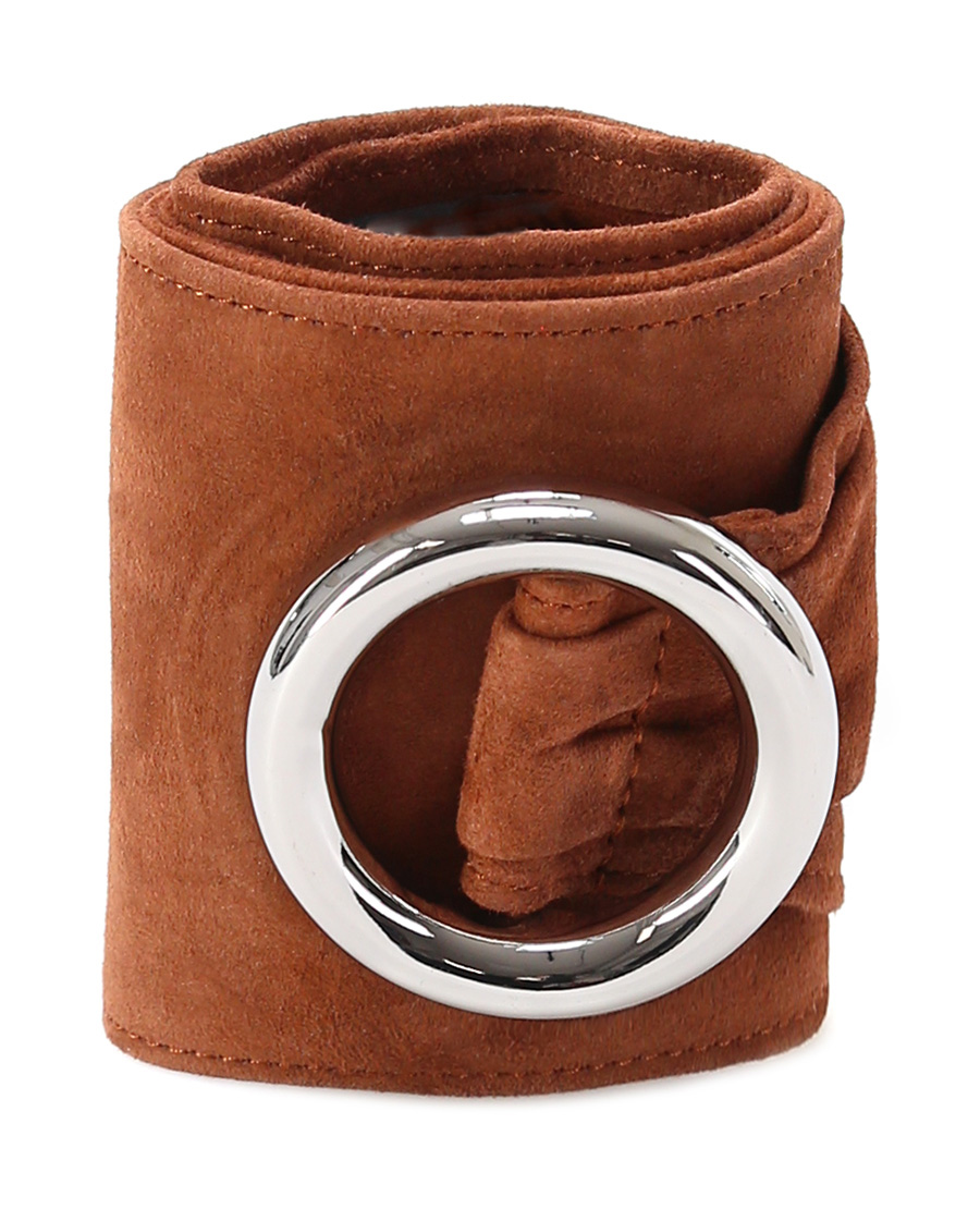 Cintura in pelle scamosciata con fibbia metallica. Altezza 9,5 cm.