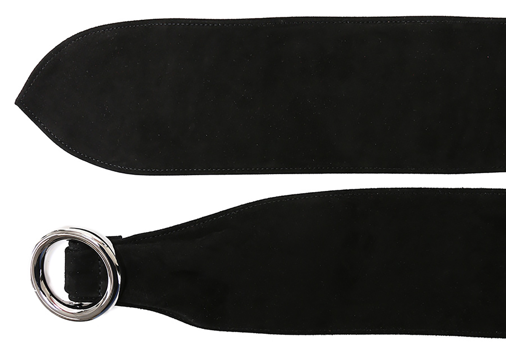 Cintura in pelle scamosciata con fibbia metallica. Altezza 9,5 cm.