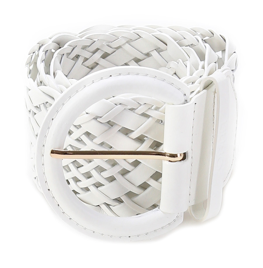 Cintura in eco pelle intrecciata con fibbia. Altezza 6 cm.