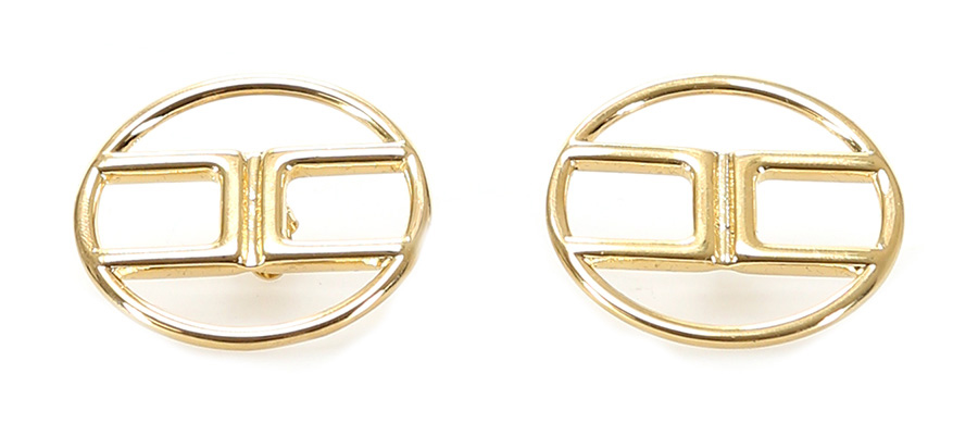 Orecchini logati in metallo placcati oro. Misure 3,5 x 3,5 cm. Dettagli gold.