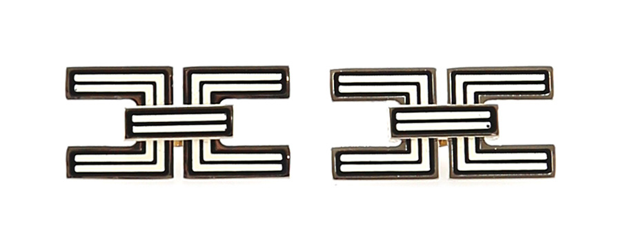 Orecchini in metallo con chiusura farfalla. Logo in fantasia rigata. Misure 2,5 x 1 cm. Dettagli gold.