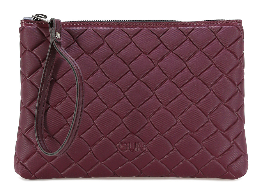 Pochette in lattice con chiusura zip. Polsino incluso. Misure 26 x 19 cm. Dettagli silver.