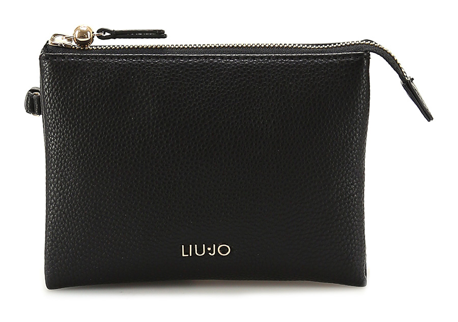 Pochette in eco pelle effetto martellato con chiusura zip. Due tasche interne aperte e una con zip. Misure 15 x 18 cm. Dettagli gold.