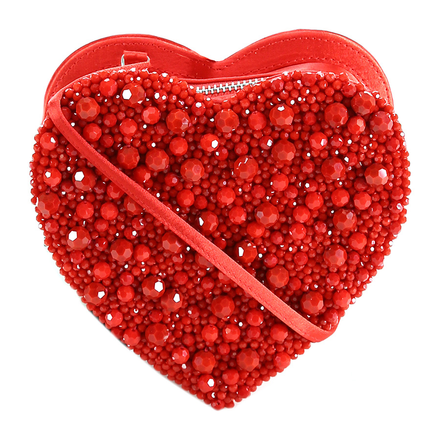 Pochette in raso con chiusura zip. Perline applicate. Tracolla inclusa. Misure 16 x 17 cm. Dettagli silver.