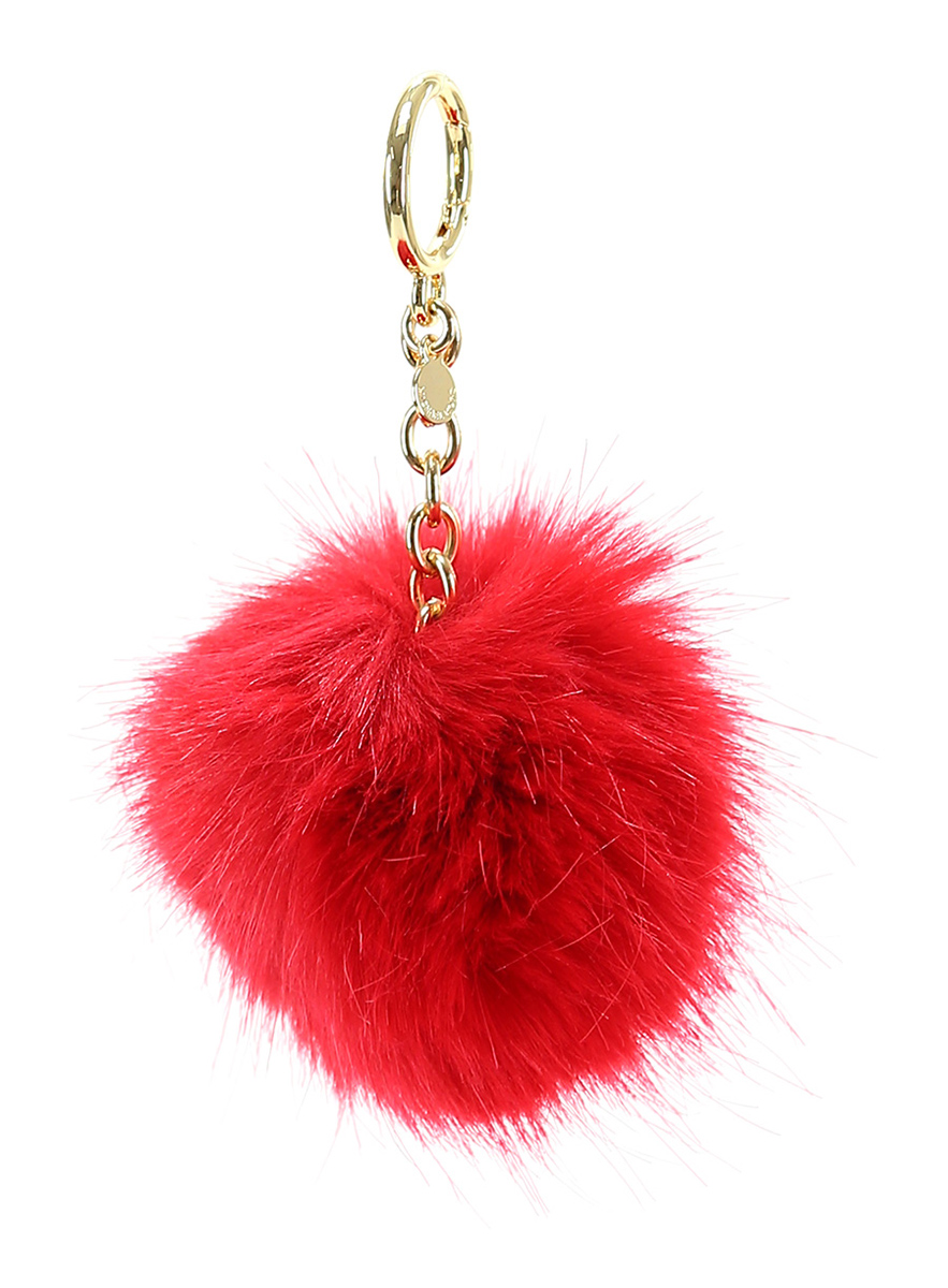 Portachiavi in fake fur con anello e logo gold. Misure 7 x 7 cm.