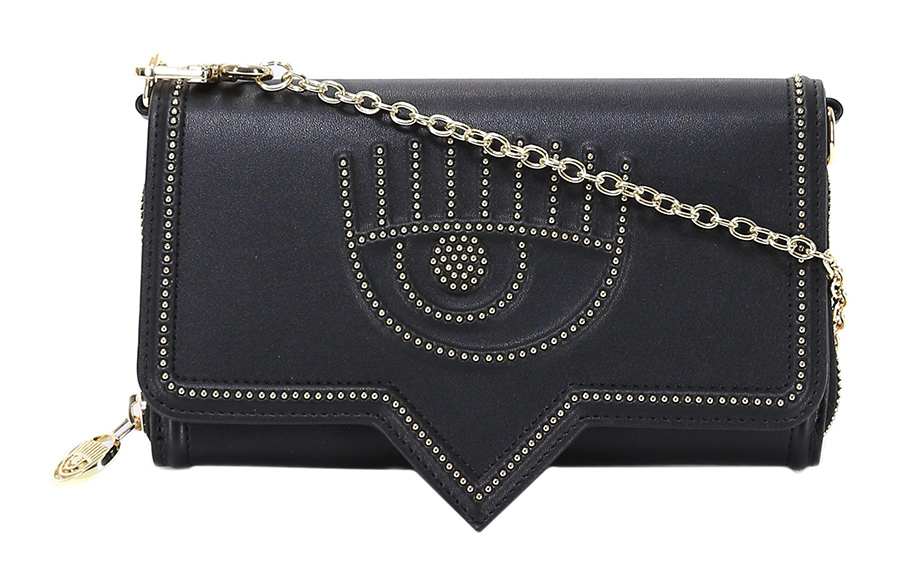 Borsa portafoglio in pelle sintetica con bottone magnetico di chiusura. Tracolla in metallo inclusa. Misure 21 x 13 cm.