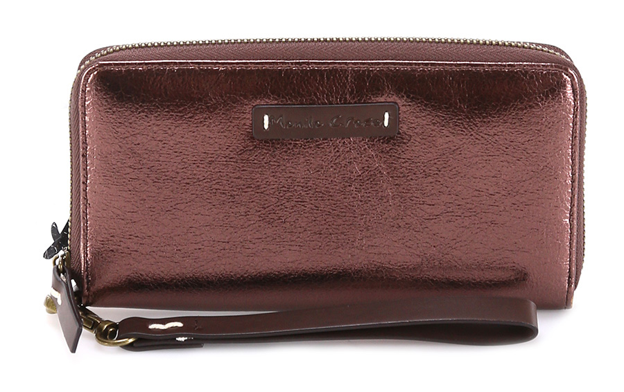 Portafoglio in pelle con chiusura a zip e scomparti porta tessere, banconote e monete interni. Misure 19 x 10 cm. Dettagli silver.