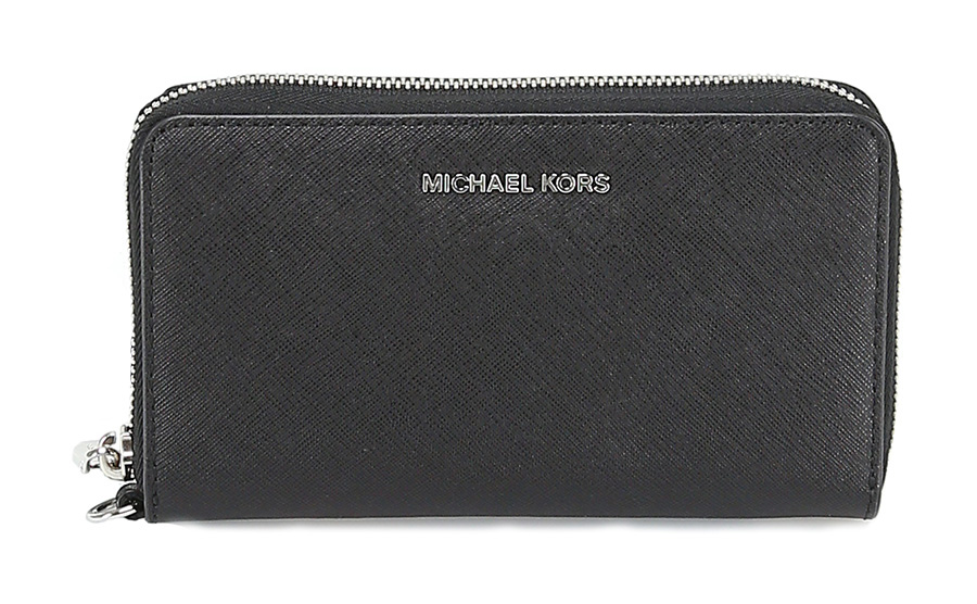 Portafoglio in pelle saffiano con chiusura a zip e scomparti porta tessere, banconote, monete e porta cellulare interni. Decorazioni silver, misure 17 x 10 cm.