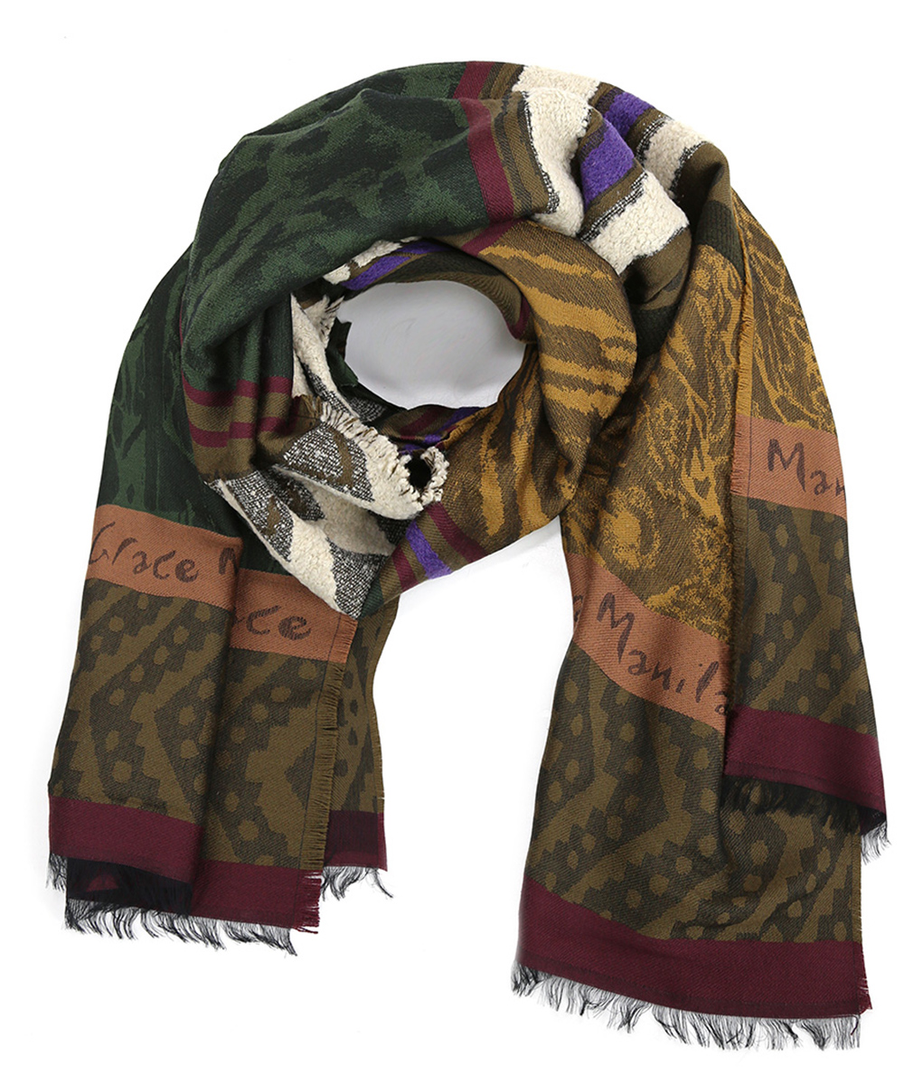 Sciarpa in misto lana e modal con fondo sfrangiato. Logo su tessuto. Misure 198 x 77 cm.