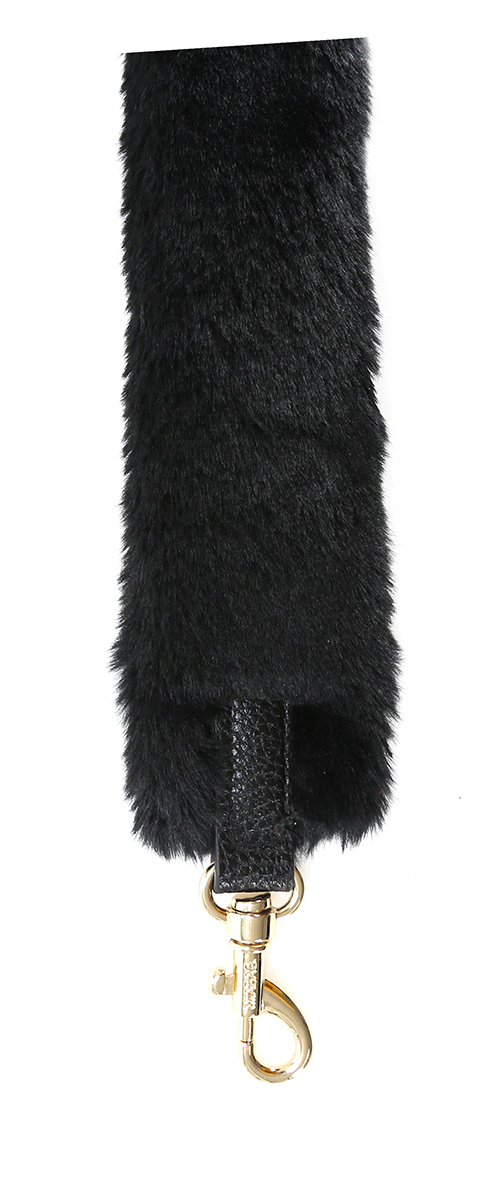 Tracolla in pelliccia con inserti in eco pelle. Misura 81 cm. Dettagli gold.