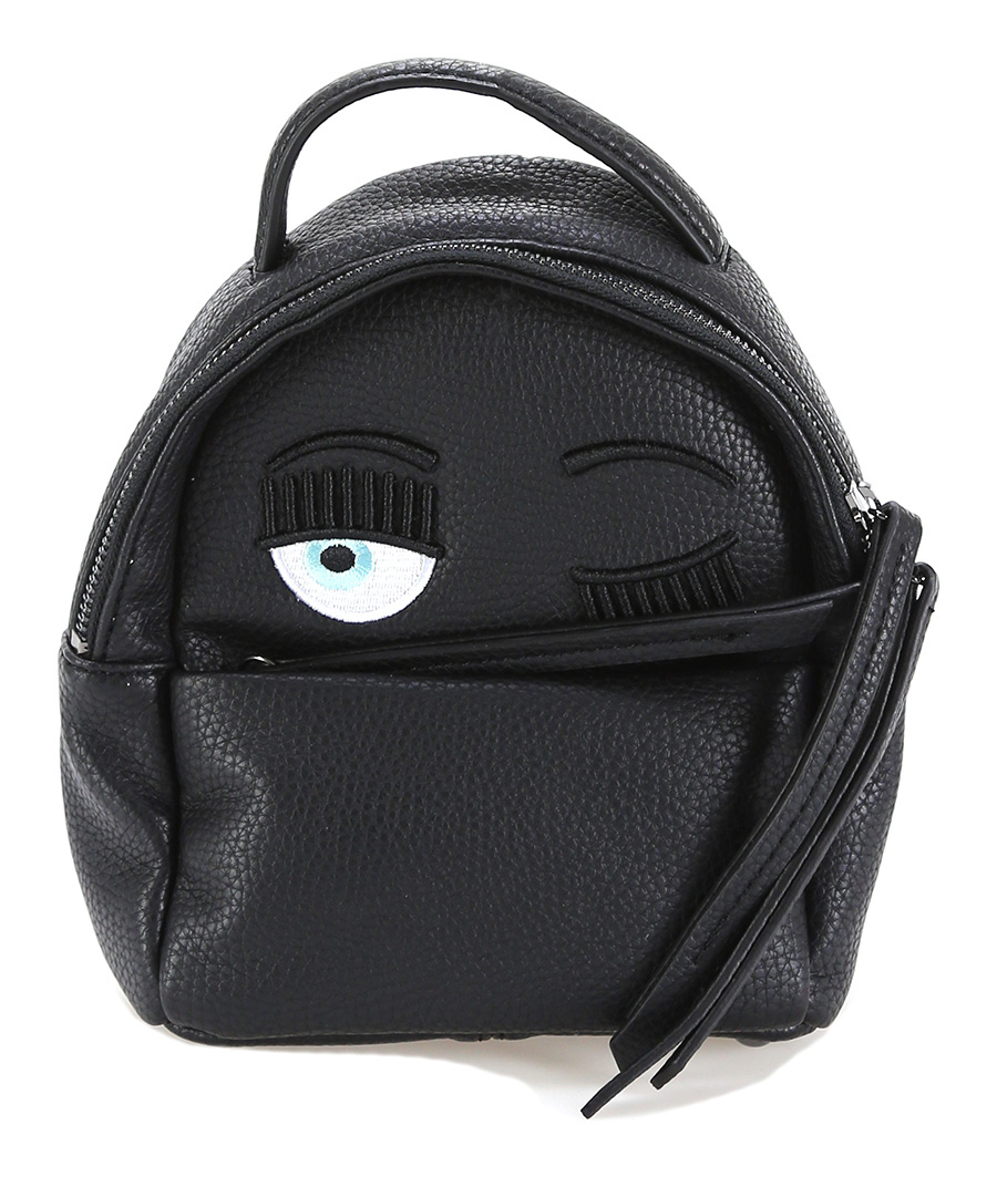 Zaino in eco pelle effetto martellato con chiusura zip. Logo frontale. Misure 18 x 21 cm. Dettagli silver.