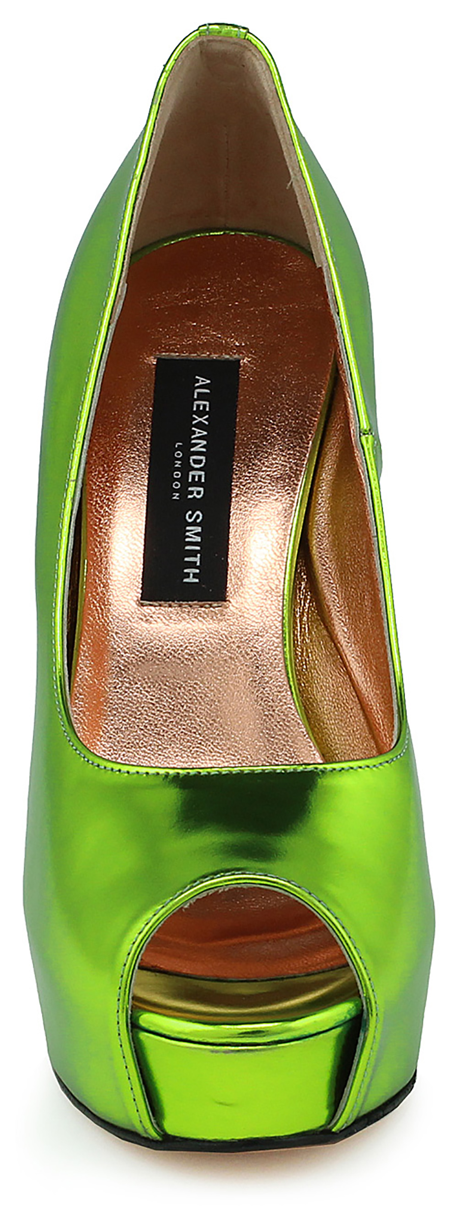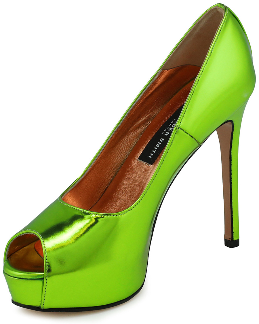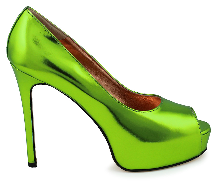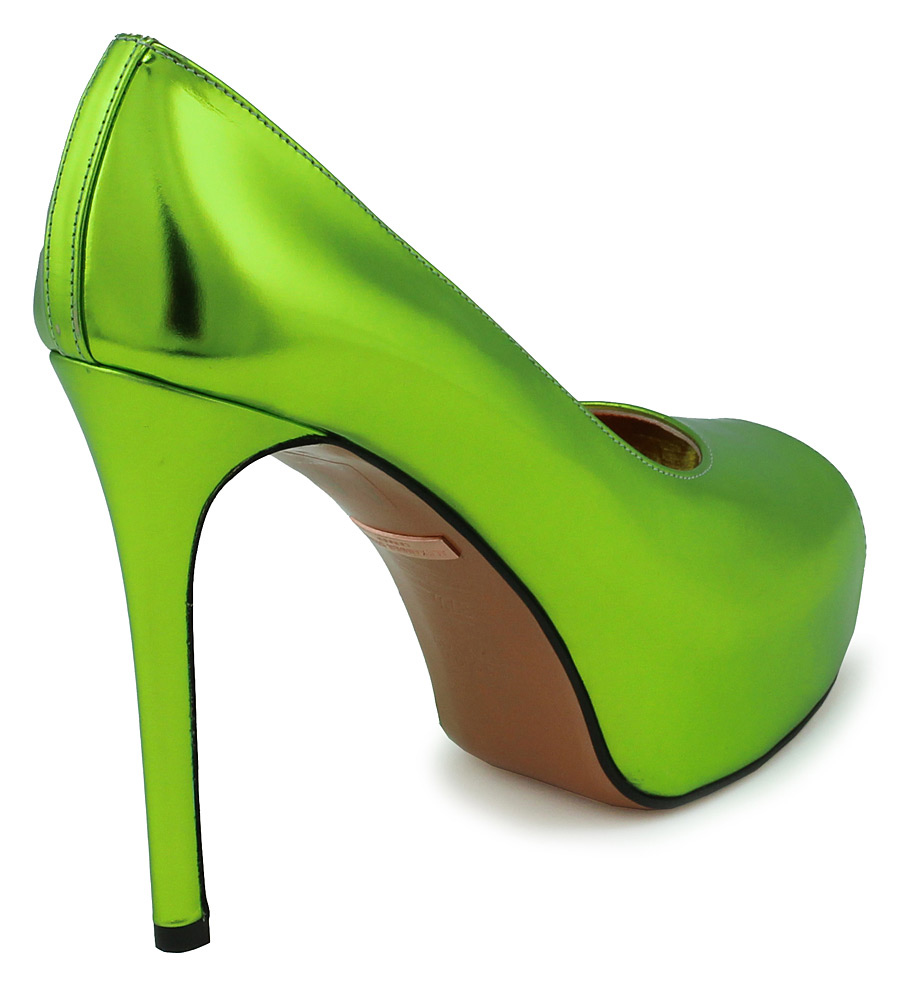 Decolletè in pelle con suola in cuoio. Tacco 120, platform 30 con battuta 90.