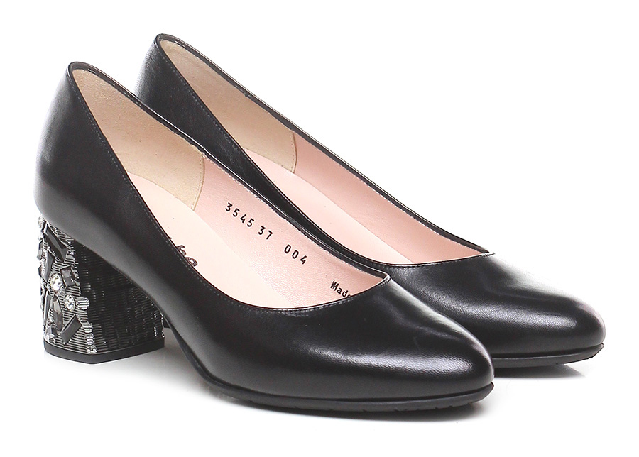 Decolletè in pelle con suola in gomma. Tacco 65, lavorato effetto metallo tempestato di strass.