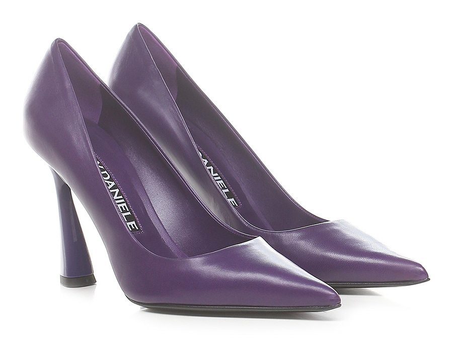 Scarpa in pelle con suola in cuoio. Altezza tacco 100mm. Tacco in pvc effetto lucido.