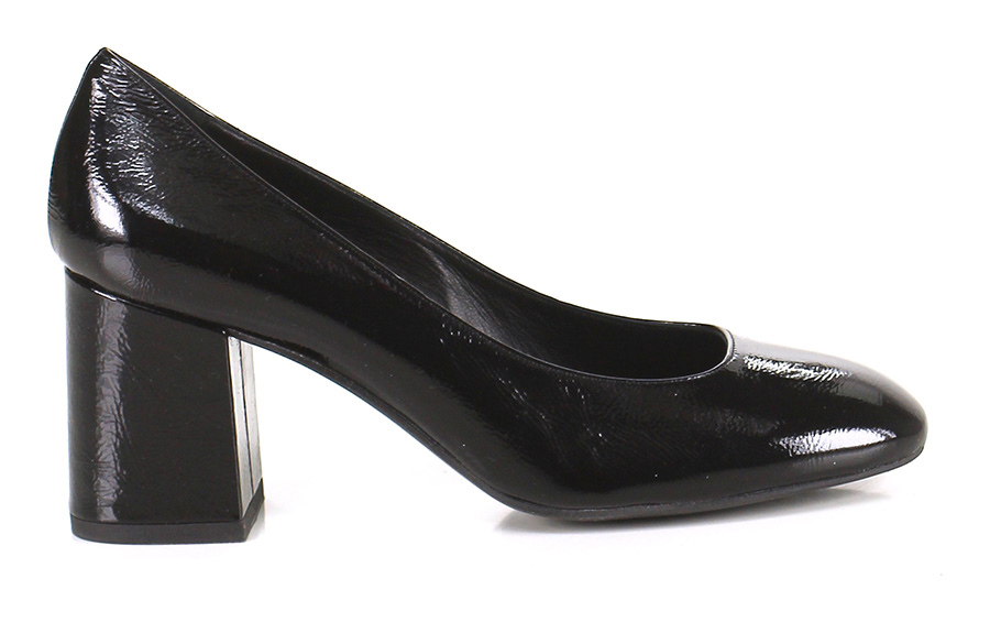 Decolletè in vernice effetto vintage con suola in gomma. Tacco 75.