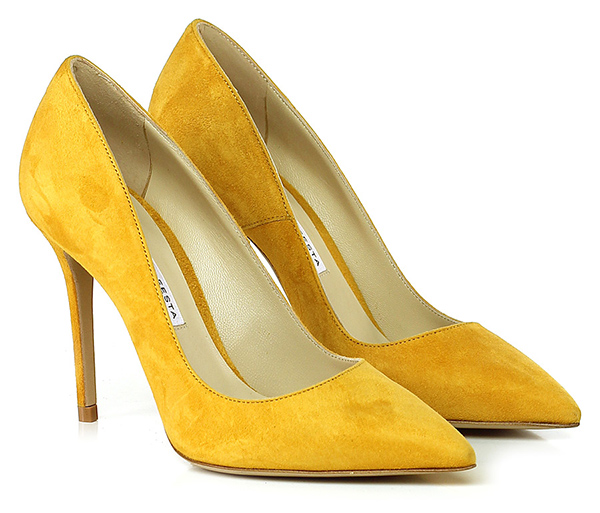 Decolletè in camoscio con suola in cuoio. Tacco 105.