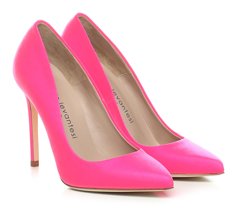 Decolletè in tessuto con suola in cuoio, tacco 100.