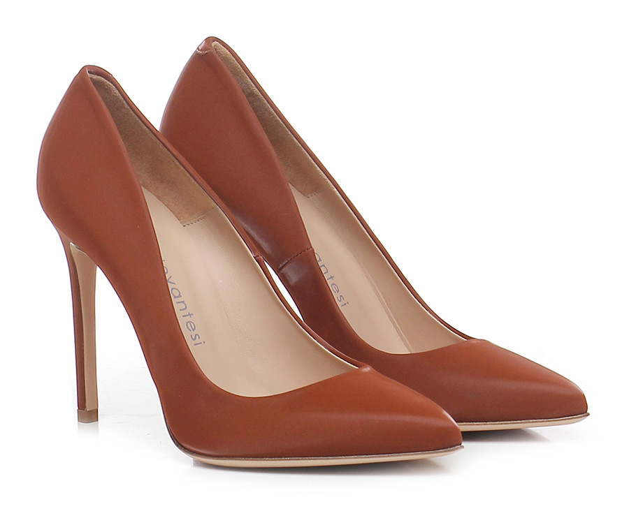 Decollete in ecopelle di materiale bio vegano, suola in cuoio e gomma. Tacco 105.