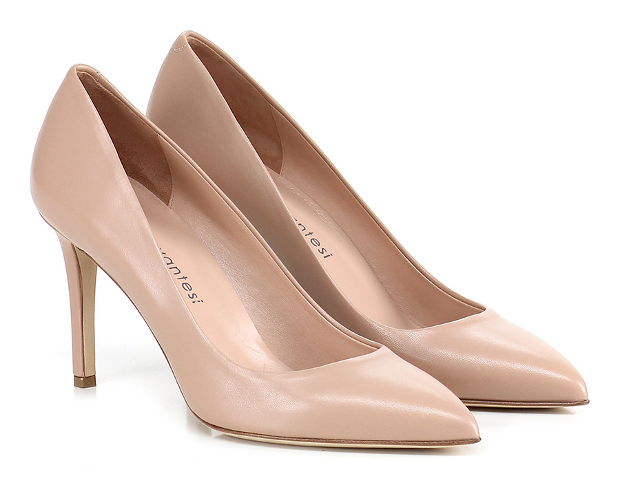 Decolletè in pelle con suola in cuoio. Tacco 90.