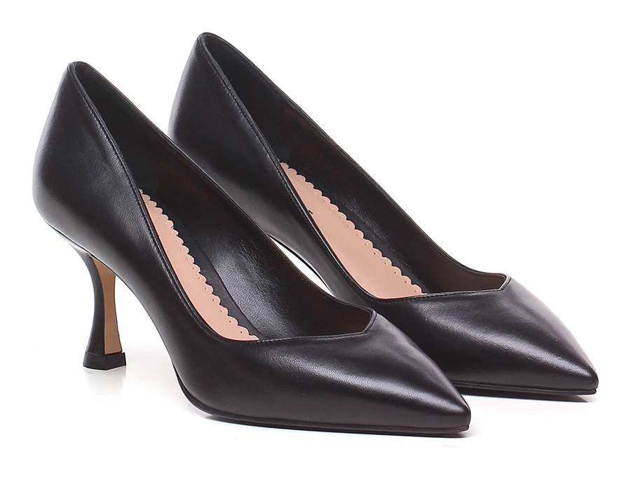 Decolletè in pelle con suola in cuoio e gomma. Tacco 80.
