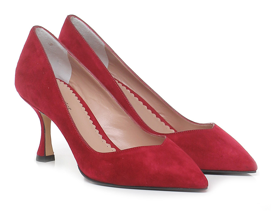 Decolletè in camoscio, suola in cuoio e gomma. Tacco 75.