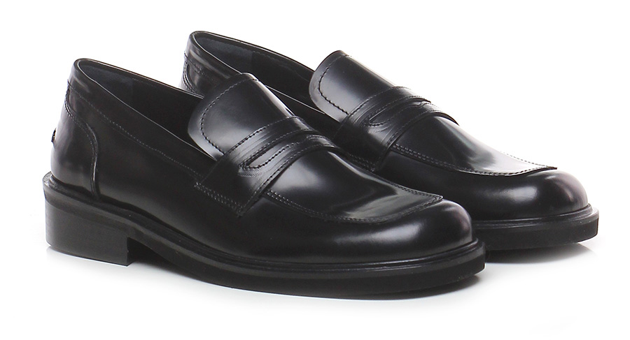 Mocassino in pelle effetto spazzolato, suola in gomma. Tacco 35, platform 15 con battuta 20.