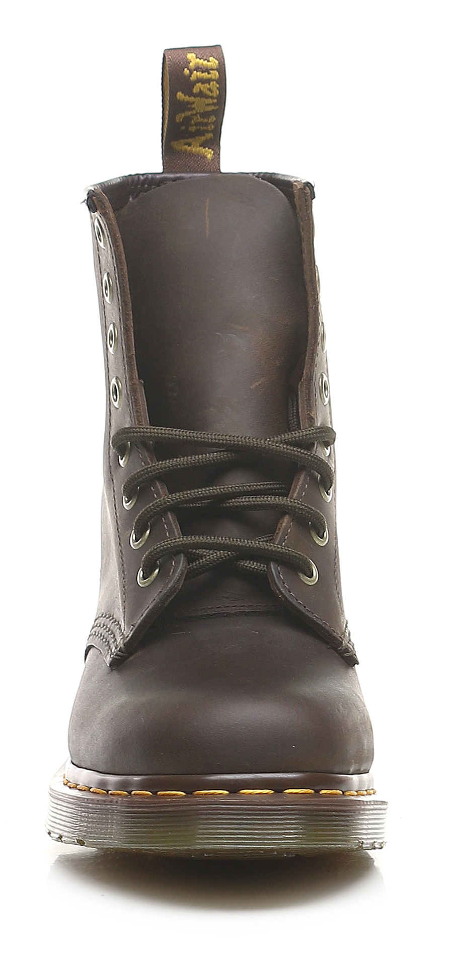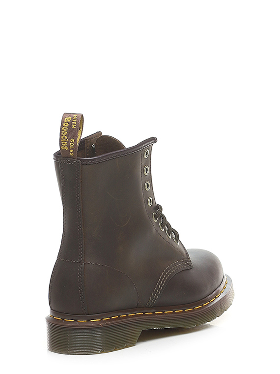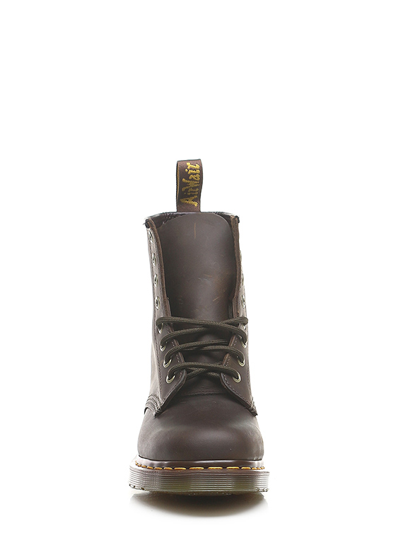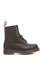 Polacco in pelle effetto vintage con suola in gomma. Altezza tacco 35mm, platform 20mm con battuta 15mm.