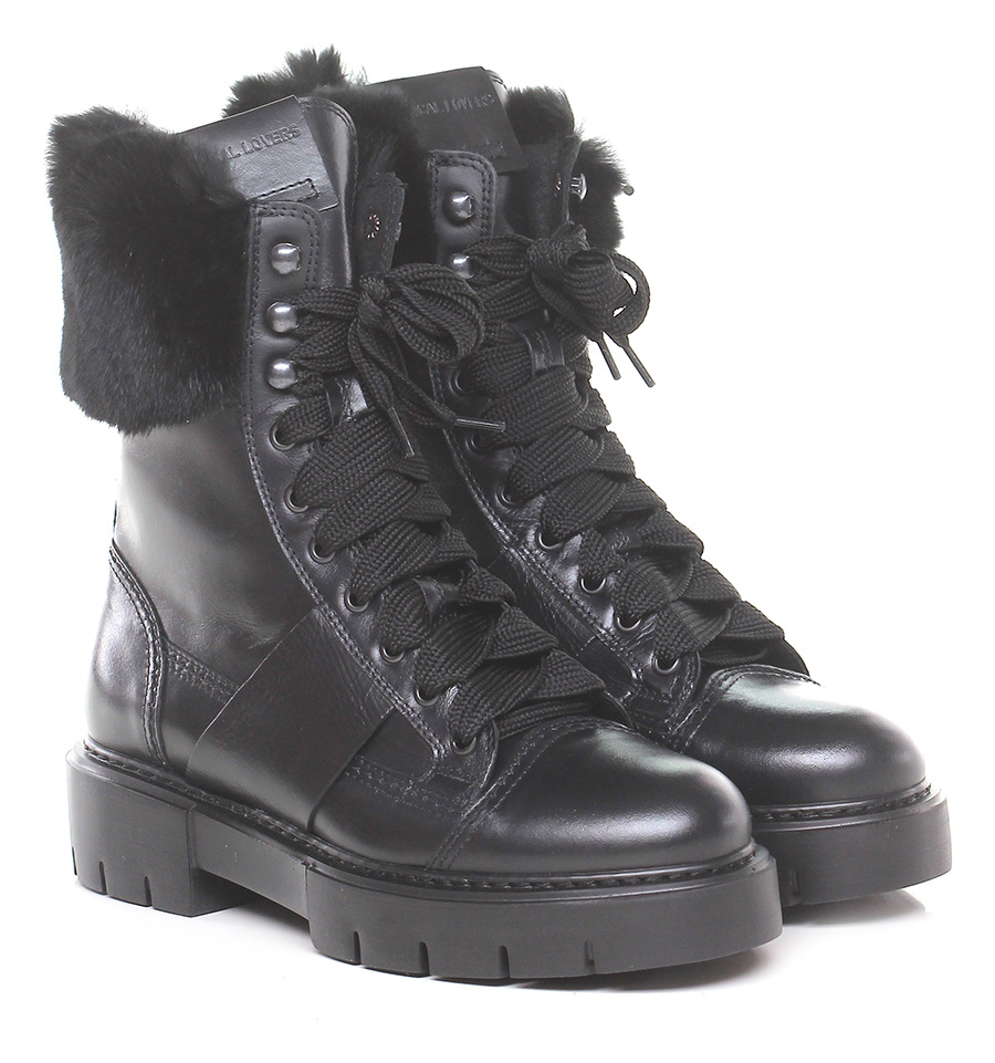 Polacco in pelle vintage e fake fur con suola in gomma extra light. Tacco 45, platform 30 con battuta 15.