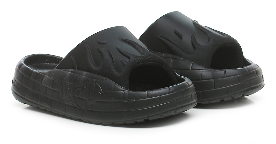 Sandalo in gomma e tessuto. Suola in gomma. Altezza tacco 35mm, platform 25mm con battuta di 10mm.