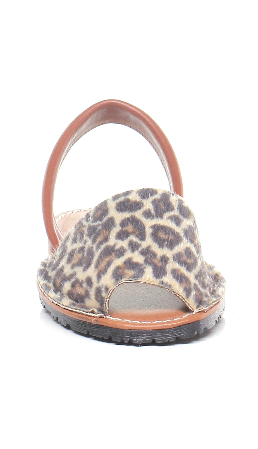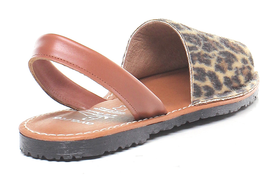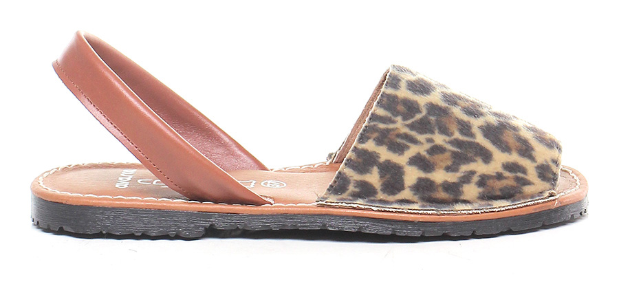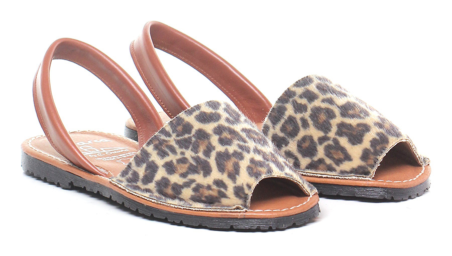 Sandalo basso in pelle e cavallino stampato con suola in gomma. Tacco 20.
