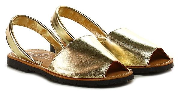 Sandalo basso in pelle laminata con suola in gomma. Tacco 15.