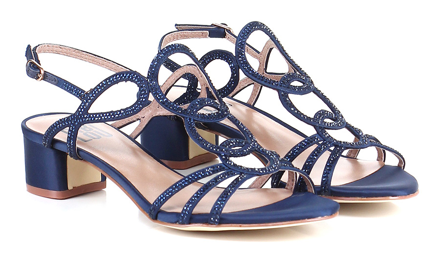 Sandalo basso in tessuto con cinturino su retro e strass su tomaia. Suola in gomma, tacco 45, platform 15 con battuta 30.