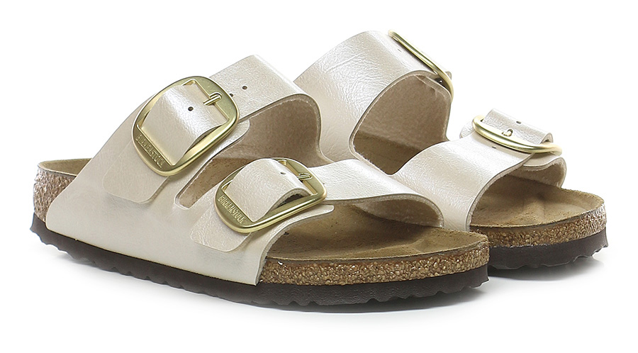 Sandalo in similpelle con doppio cinturino frontale regolabile e suola in gomma. Altezza suola 25mm.