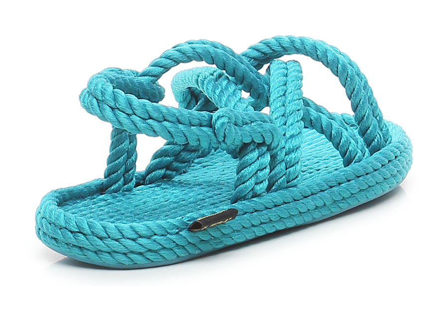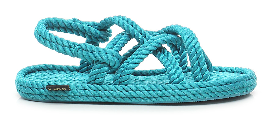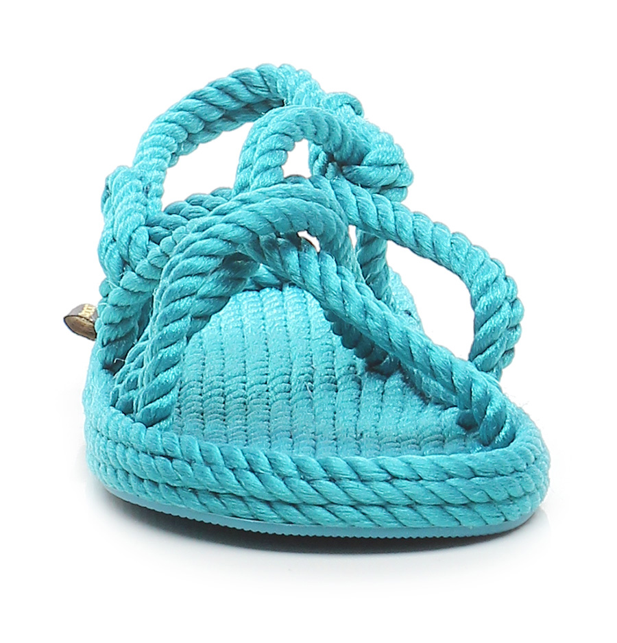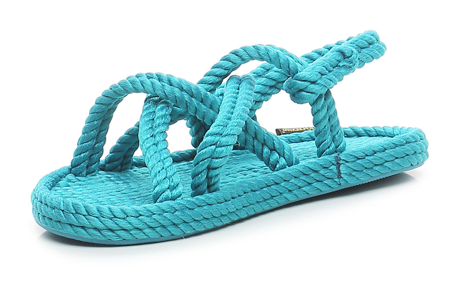 Sandalo basso fatto a mano in corda intrecciata antibatterica vegana con cinturino sul retro slip-on. Suola in gomma riciclabile. Tacco 15, platform 15, sono resistenti all'acqua salata del mare e piscina, calzata piccola. Indossare i sandali Bohomad danno la sensazione di andare a piedi nudi, handmade 100%.