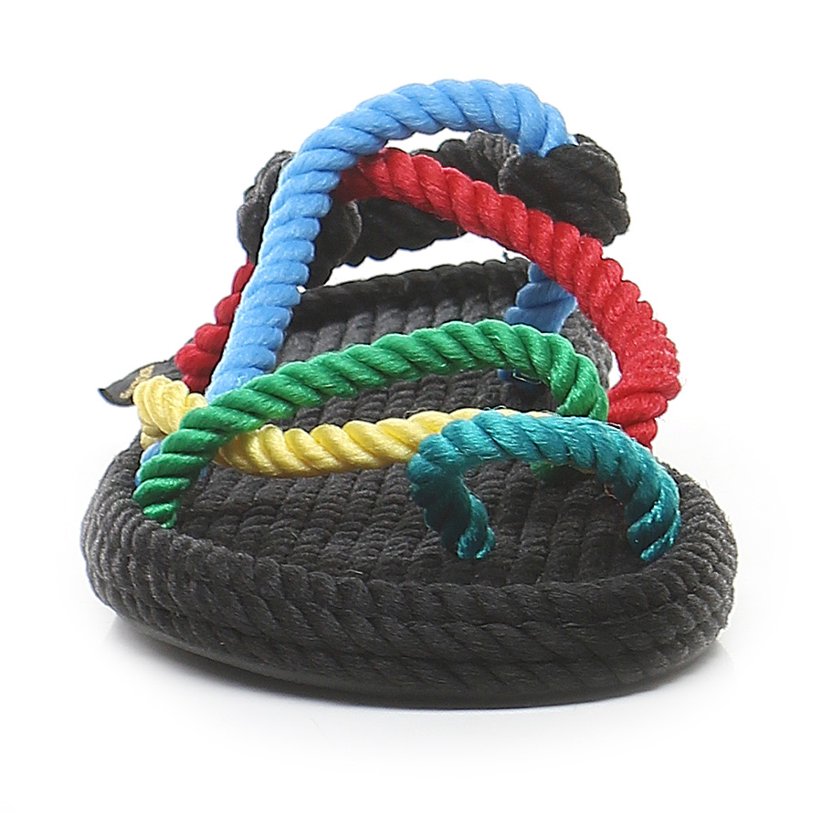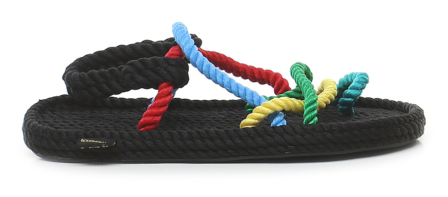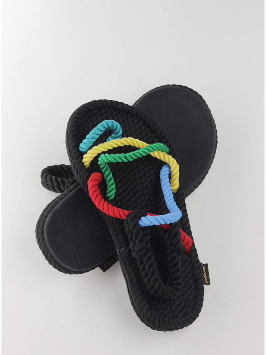 Sandalo basso fatto a mano in corda intrecciata antibatterica vegana con cinturino sul retro slip-on. Suola in gomma riciclabile. Tacco 15, platform 15, sono resistenti all'acqua salata del mare e piscina, calzata piccola. Indossare i sandali Bohomad danno la sensazione di andare a piedi nudi, handmade 100%.