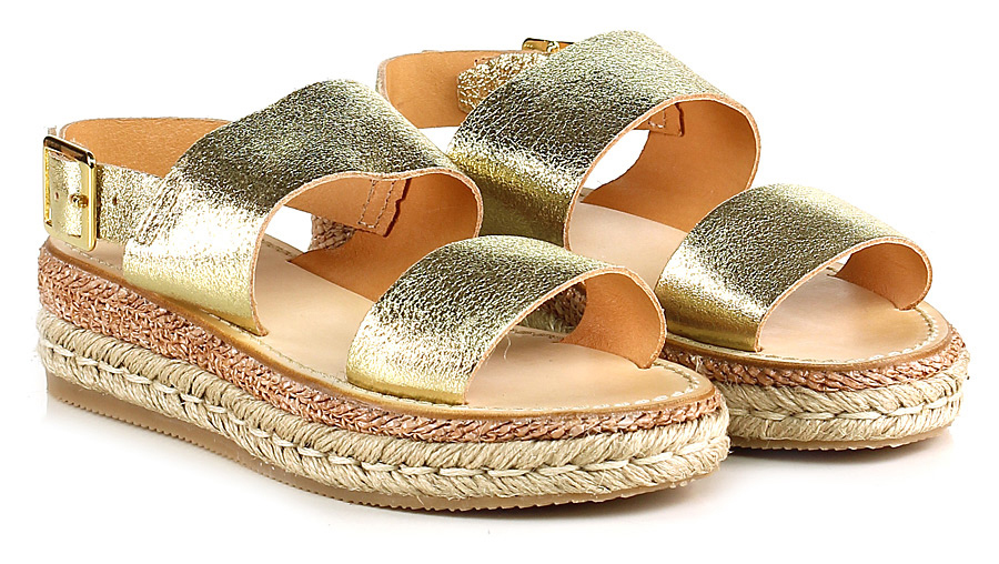 Sandalo basso in pelle laminata vintage con cinturino su retro e suola in gomma. Tacco 45, platform 30 con battuta 15.