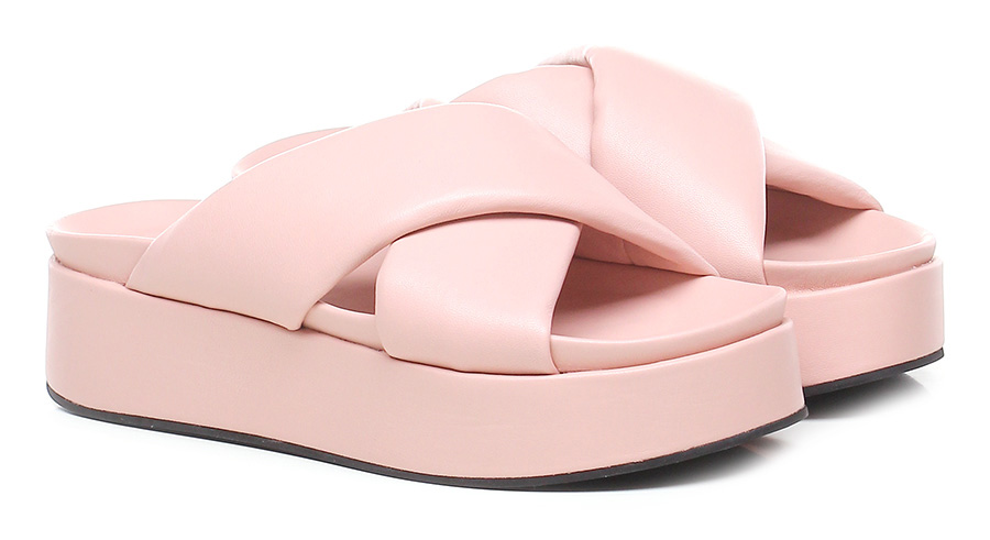 Sandalo basso in pelle, suola in gomma. Tacco 40, platform 35 con battuta 5.