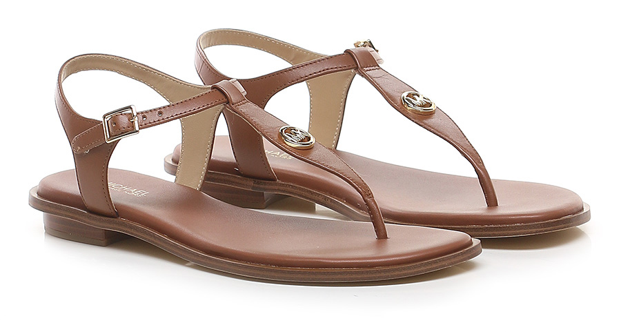 Sandalo in pelle con cinturino alla caviglia e logo frontale gold su tomaia. Suola in gomma. Altezza tacco 20mm.