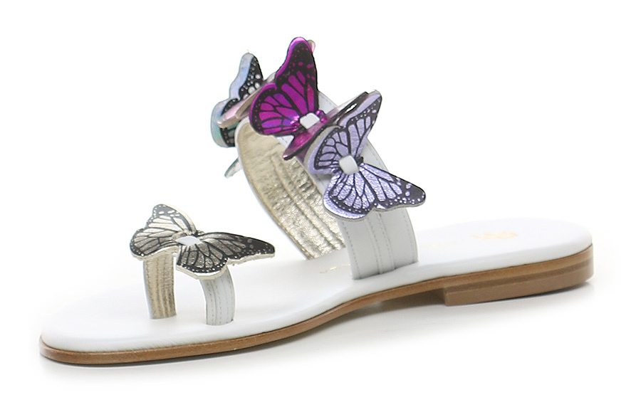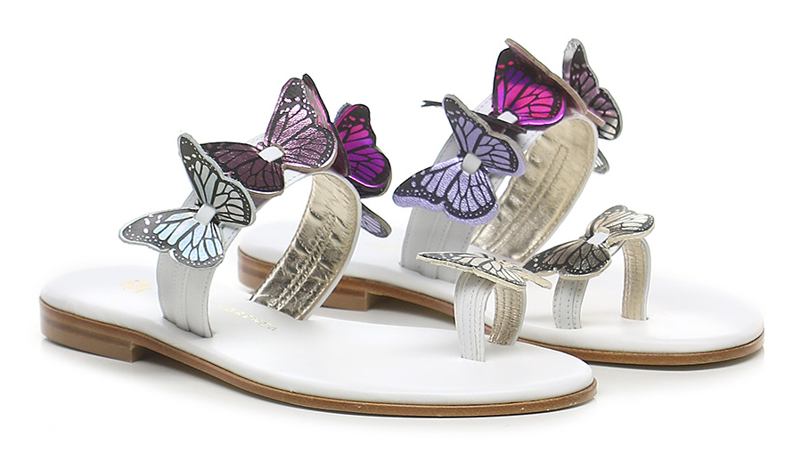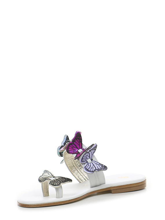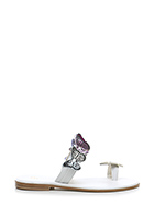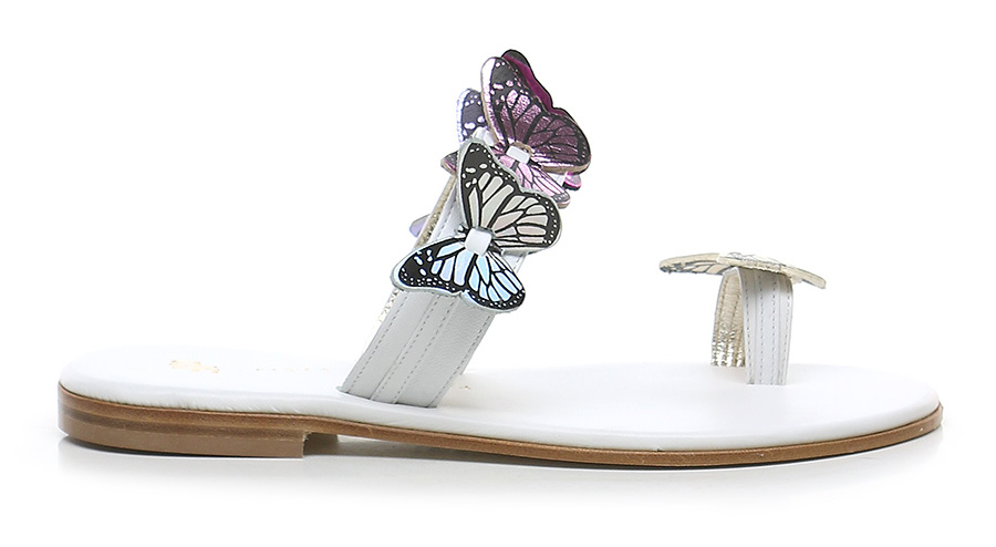 Sandalo in pelle con accessori frontali in pelle. Suola in cuoio e gomma. Altezza tacco 20mm.