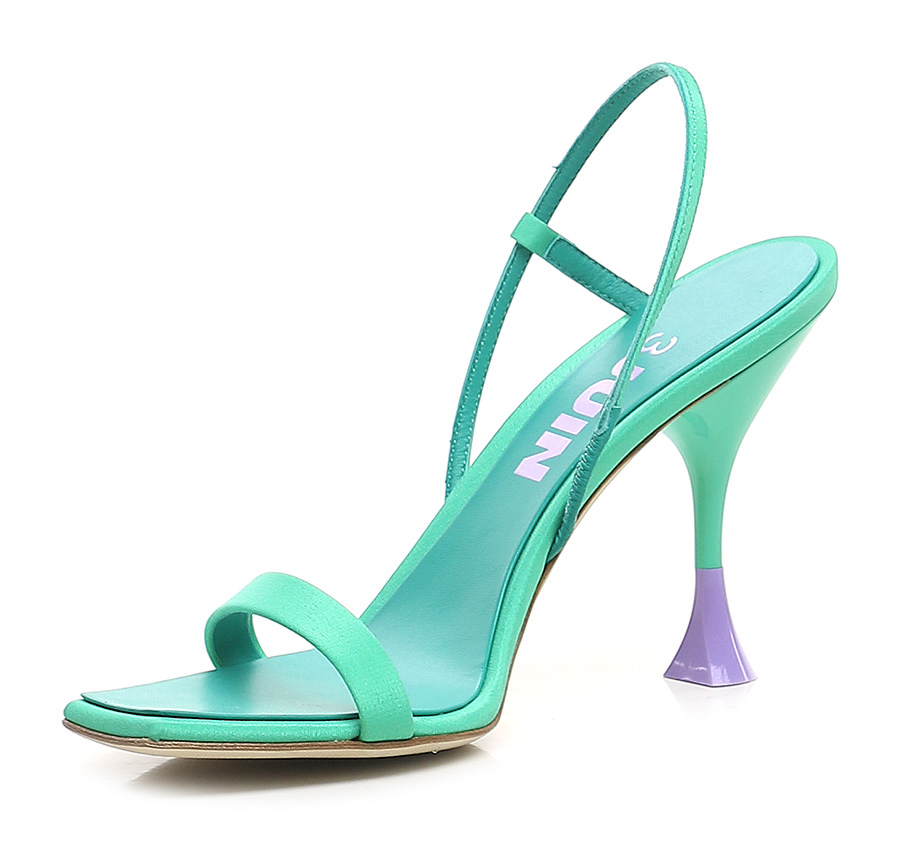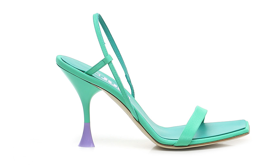 Sandalo in raso con tacco in pvc. Suola in gomma. Altezza tacco 100mm.
