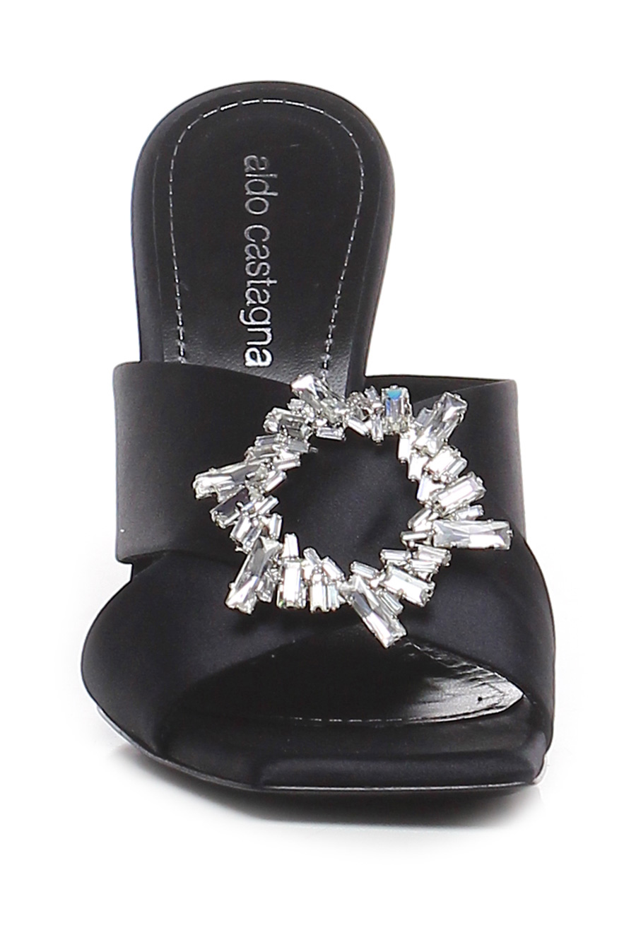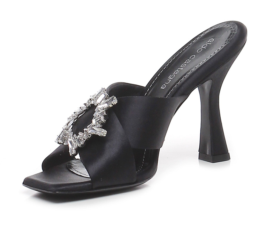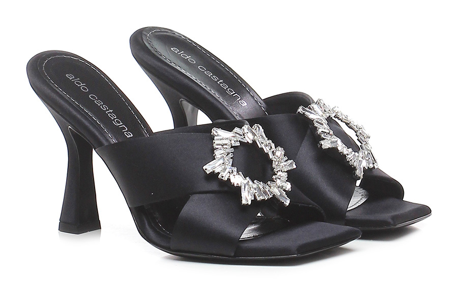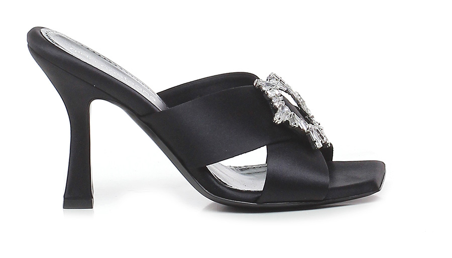 Sandalo alto in raso applicazioni in strass frontale, cuoio. Tacco 105.