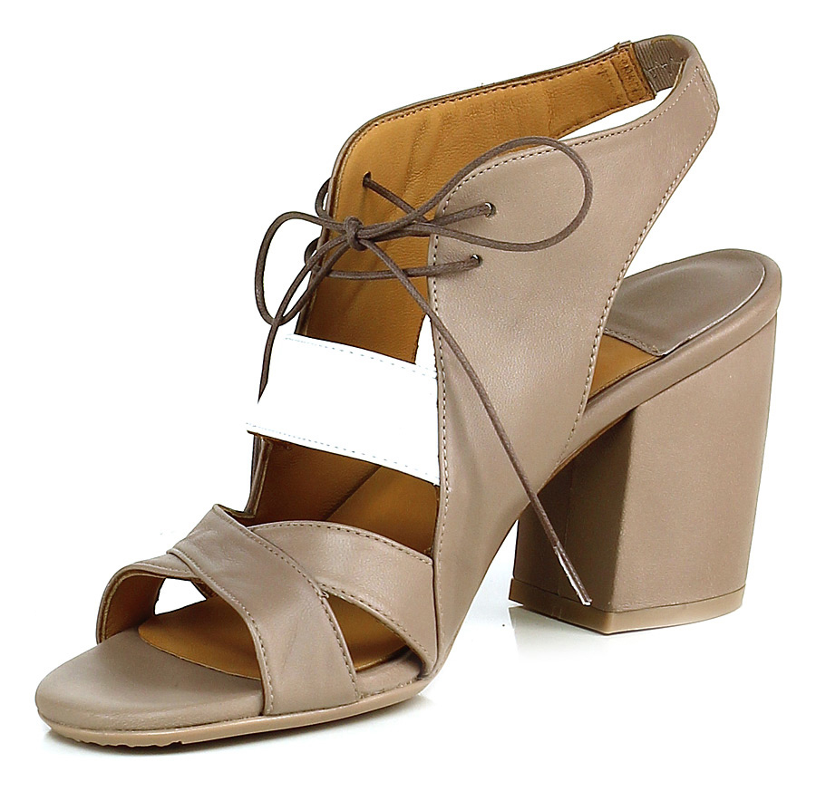 Sandalo alto in pelle con suola in cuoio e gomma. Tacco 85.