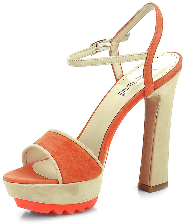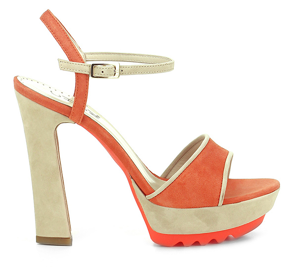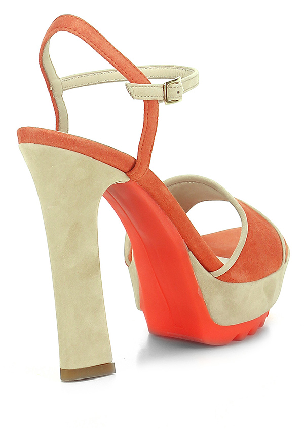 Sandalo alto in camoscio con cinturino alla caviglia e suola in gomma. Tacco 135, platform 40 con battuta 95.