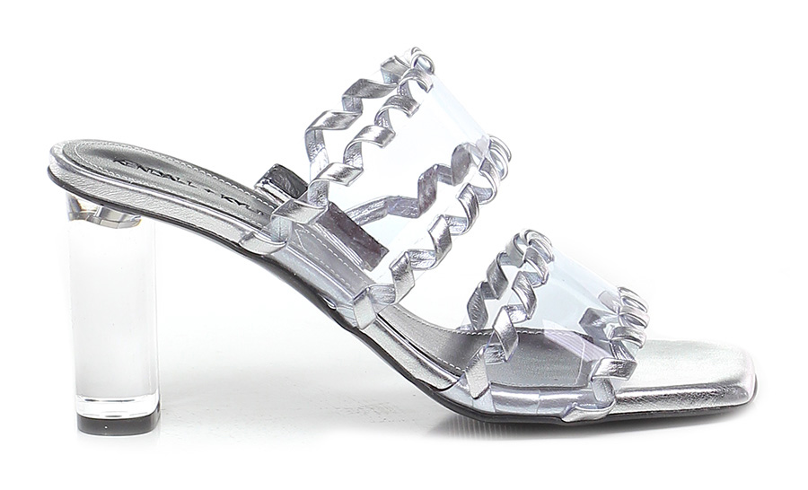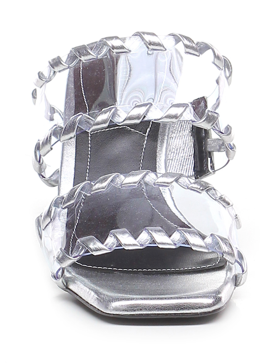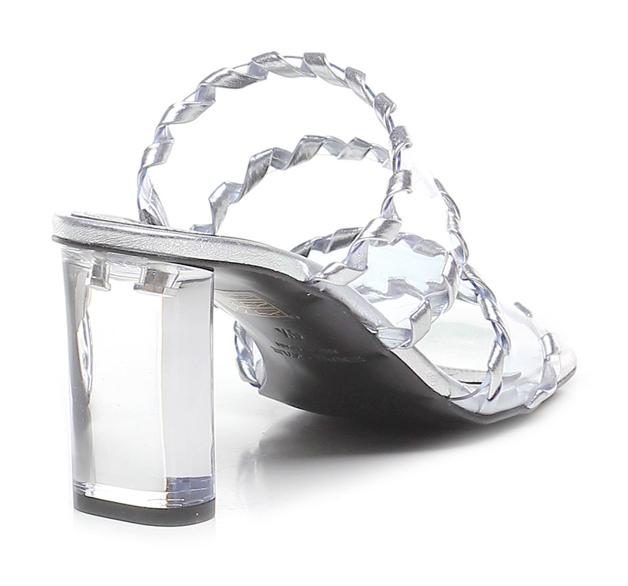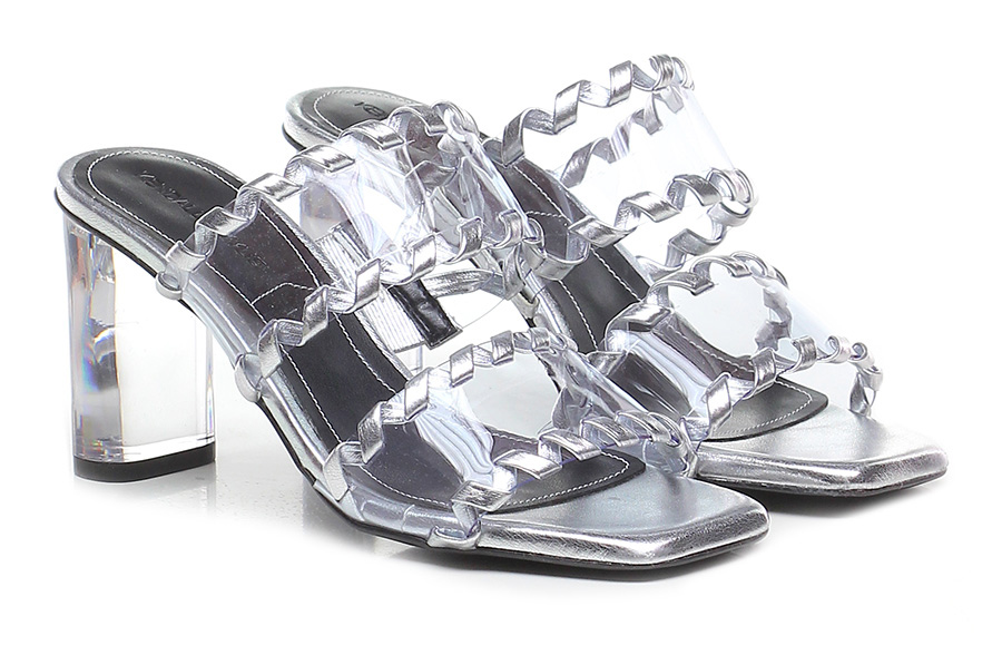 Sandalo alto in eco pelle e pvc, suola in gomma. Tacco 85 in pvc.