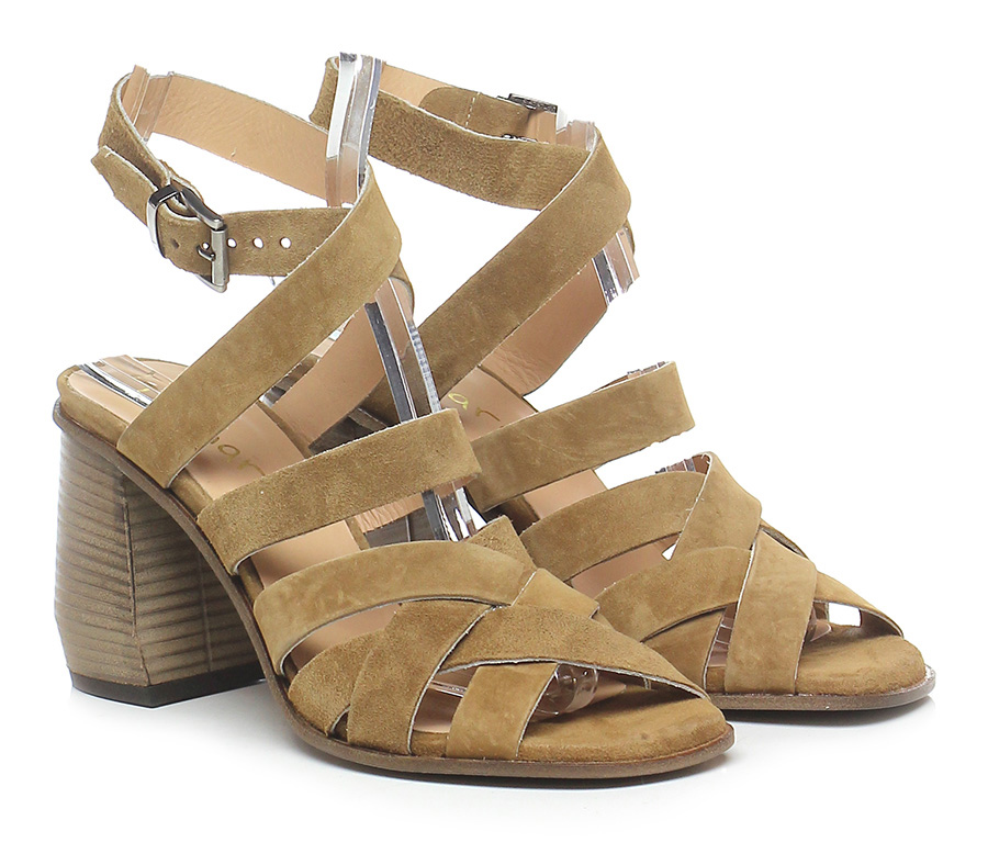 Sandalo alto in camoscio con cinturino alla caviglia, suola in cuoio. Tacco 90.