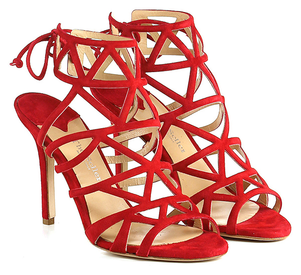 Sandalo alto in camoscio con allacciatura su retro e suola in cuoio. Tacco 110.