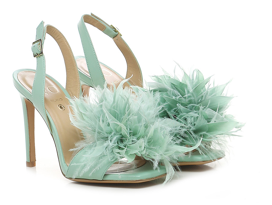 Sandalo in pelle con cinturino alla caviglia e accessorio in tessuto frontale. Suola in cuoio. Altezza tacco 115mm.