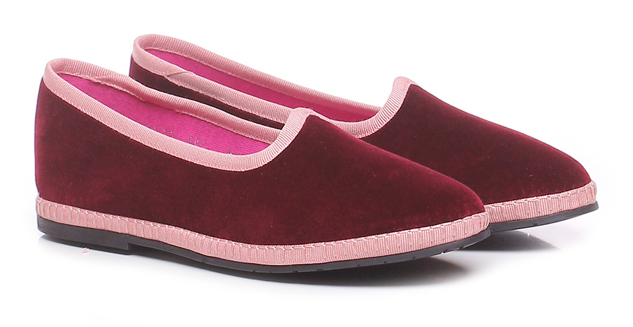 Scarpa bassa in velluto con profili ton-sur-ton, suola in gomma. Tacco 15.